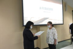 日明リサイクル工房では今年度、2名の従業員が永年勤続の表彰を受けました。 永年勤続表彰式を行い、小松理事長から賞状と記念品が手渡されました。受賞の挨拶では、受賞の喜びと感謝、今後への意欲が伝わってきま…