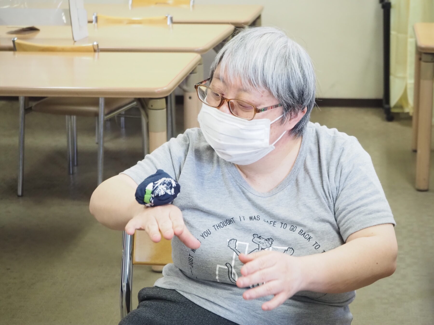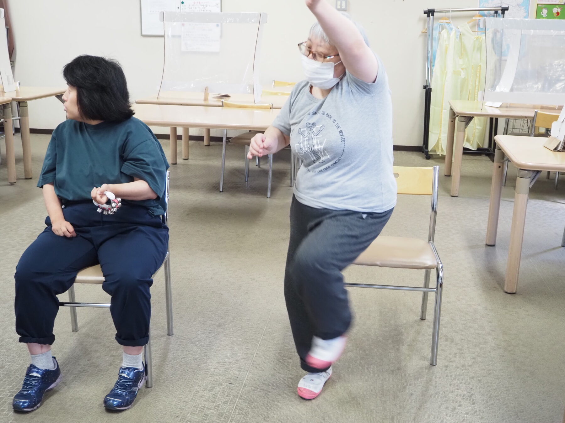 生活介護事業での活動『ミュージックケア』を今月も元気に行いました。普段は身体を動かすことが苦手な人も、山本リンダの「狙い撃ち」がかかると、