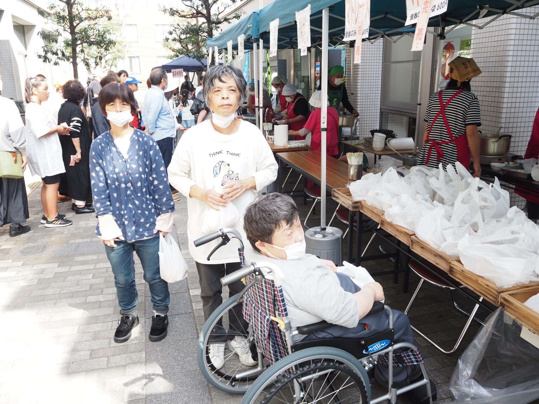 洞海工芸舎の向かい側にある若松中央市民センターで行われた文化祭の見学に出かけました。展示会場ではアートフラワーや書道展があり洞海工芸舎生活介護の方々の作品も展示されており、「あっ、Kさんの作品がある」と声が出ていました。当日は土曜日ということもあり、休日の家族連れや近所の子供たちで大変賑わっており、バザー会場ではカレーライスやぜんざい、お菓子、コーヒー販売の行列が出来ていました。皆さんお菓子やコーヒーなど好きなものを購入しベンチに座って舌鼓、ゆっくりとした時間を過ごす事ができました。(道)