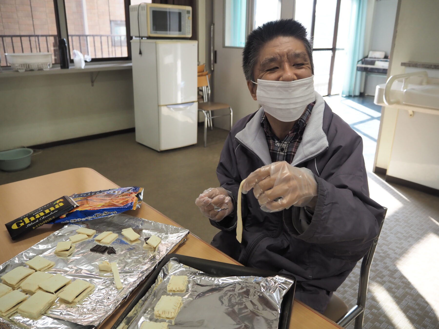 HOME 事業所NEWS チョコパイがいっぱい♪ 事業所NEWS 全一覧 本部 門司区 小倉北区 小倉南区 戸畑区 若松区 八幡東区 八幡西区 2024年01月27日 若松区 洞海工芸舎 チョコパイがいっぱい♪ 1月27日(土)生活介護事業では、チョコパイを作りました!パイ生地にチョコレートを挟んだり、ハート型にしたりと、好きな形で作りました。「いい匂いがしますね。」「めちゃくちゃ大きくなってます。」と出来上がりを楽しみにしていました。さてさて、食べる直前のこの表情!喜びが伝わってきます。お味の方は如何でしたか?(濱口) 最新ニュース NEW 2026年03月06日 戸畑区 グループホーム支援センター中部 野球観戦! 宮前ホームでは、現在開催されているWBCの強化試合に毎晩大... NEW 2026年03月05日 戸畑区 グループホーム支援センター中部 🎎ひな祭り🎎 3月3日のひな祭りは、古くは平安時代に行われていた「流し雛... NEW 2026年03月04日 戸畑区 グループホーム支援センター中部 大盛り上がり!好きなもの全部集合デー♪ 少しずつ暖かくなってきましたが、まだ外にお出かけするには少... アーカイブ 2026年3月 2026年2月 2026年1月 2025年12月 2025年11月