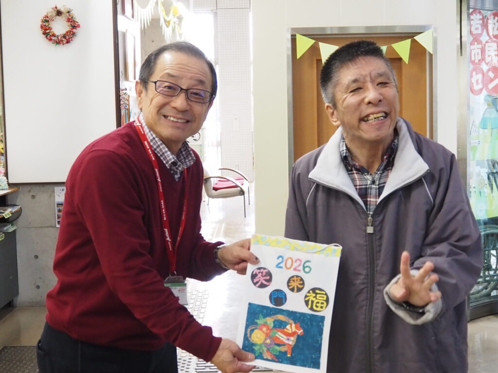 HOME 事業所NEWS カレンダー進呈♪ 事業所NEWS 全一覧 本部 門司区 小倉北区 小倉南区 戸畑区 若松区 八幡東区 八幡西区 NEW2025年12月19日 若松区 洞海工芸舎 カレンダー進呈♪ 生活介護事業にて販売した手作りカレンダーを、日頃からお世話になっている方へ感謝の気持ちを込めて進呈させて頂きました。「毎年楽しみにしているよ」「今年も素敵な出来栄えだね」と温かい言葉を掛けてもらい、嬉しくなりました。頑張って作った甲斐がありましたね!(濱口) 最新ニュース NEW 2025年12月19日 小倉南区 ヘルパーステーションぱすてる東部 虐待防止研修 ぱすてる東部では、虐待防止研修を12月16日(火)、19日(... NEW 2025年12月16日 小倉南区 グループホーム支援センター東部 大好きなお母さんに 先週末お出かけをしたHさん、実は買い物の途中で「お母さんにお... NEW 2025年12月11日 小倉南区 グループホーム支援センター東部 週末のおでかけ 週末、NさんとHさんと一緒にお出かけしました。ホームの居室は... アーカイブ 2025年12月 2025年11月 2025年10月 2025年9月 2025年8月