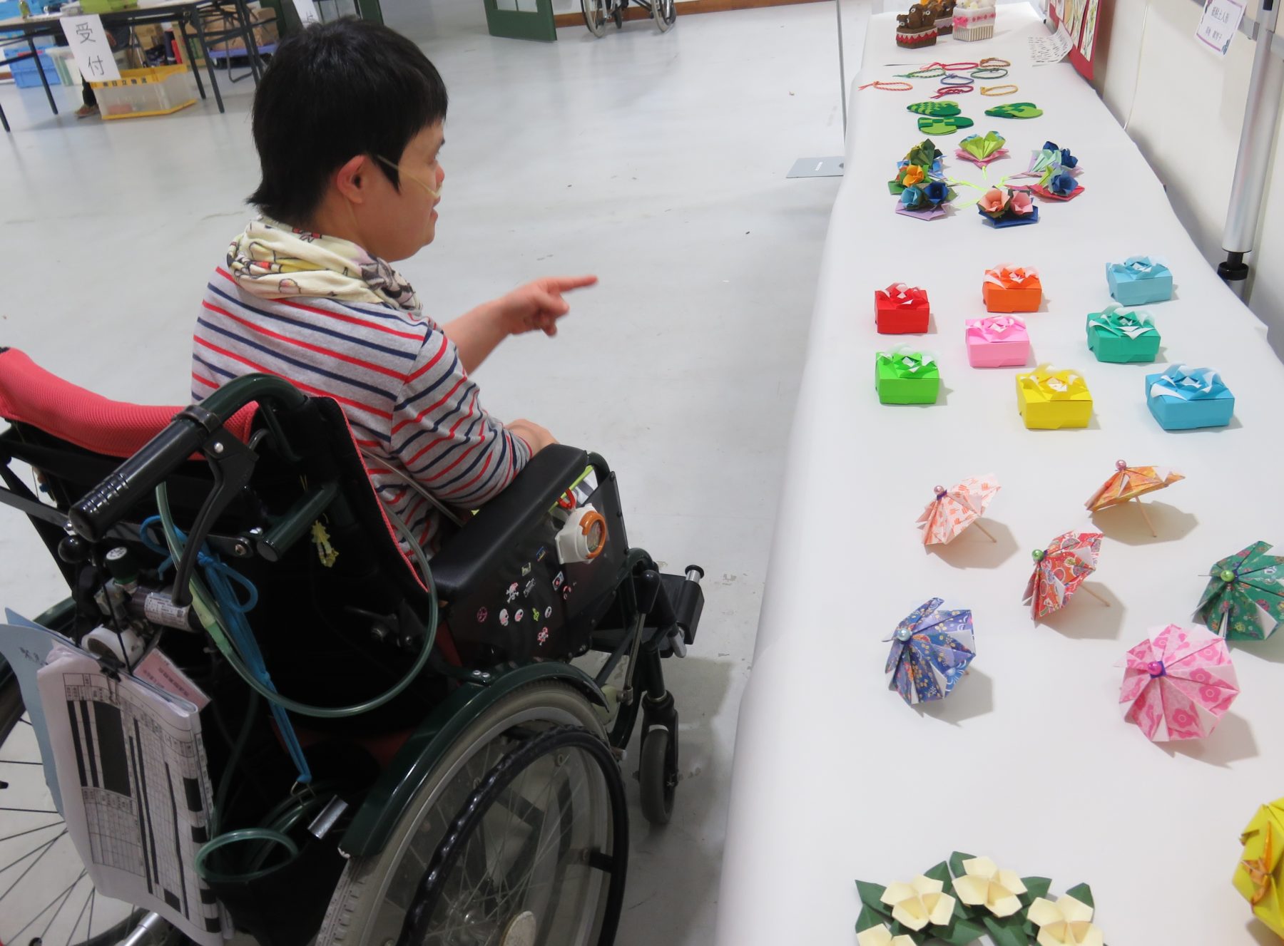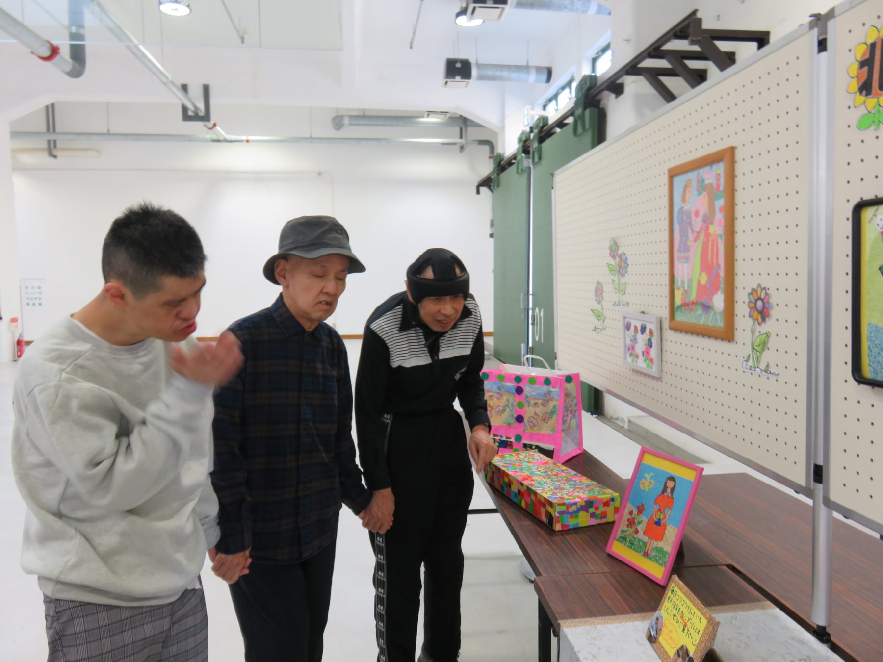見学中、利用者の方々は、広い会場に堂々と飾られている自分たちの作品を見て、どこか誇らしげな様子でした。さらに、他の施設や団体の素晴らしい作品を見て、「これ何?これ何?」と興味津々。これからもこういった刺激を糧にして様々な作品を一緒に作っていきます。(山添)