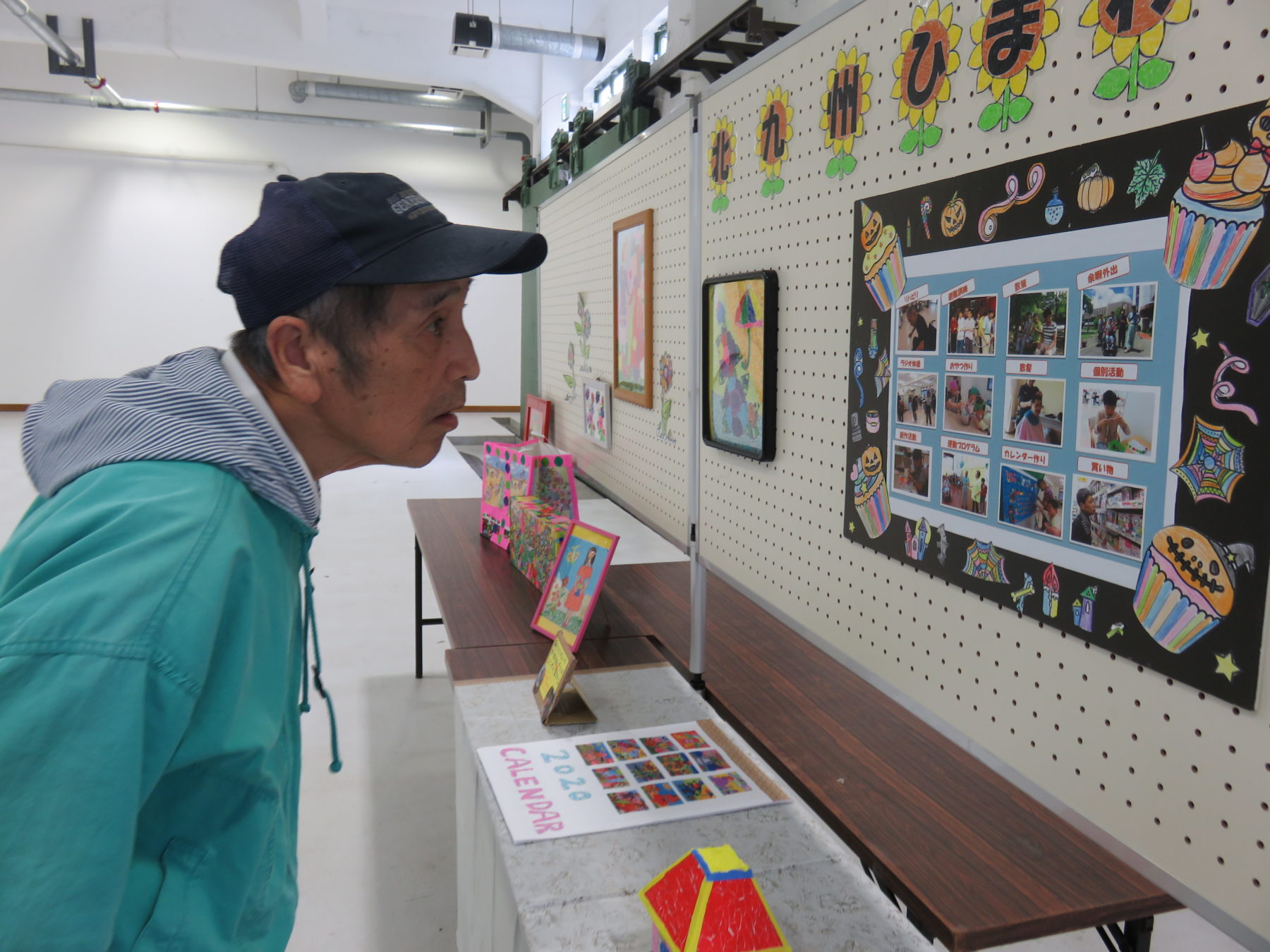 北九州ひまわりの里は、日ごろの創作活動で作成した貼り絵や塗り絵、さらにその作品を活かしたカレンダーなどを出展させていただきました。