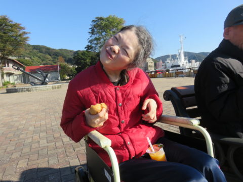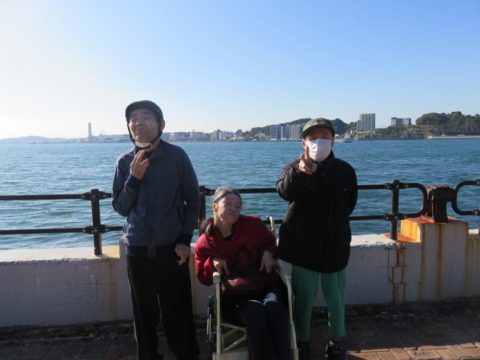 先日、余暇外出に行ってきました。シャトレーゼにて喫茶品を購入し、門司のノーフォーク広場に行ってきました。最近、肌寒くなってきましたが、この日は暖かく、海沿いでも心地良く過ごすことができました。皆さんご自分で選ばれた飲み物とスイーツを海を眺めながら喫茶を楽しまれていました。初めて参加されたSさんは、「気分転換になりました」「以前家族でこの近くに来ていたんです」と懐かしそうに話されていました。(山本)