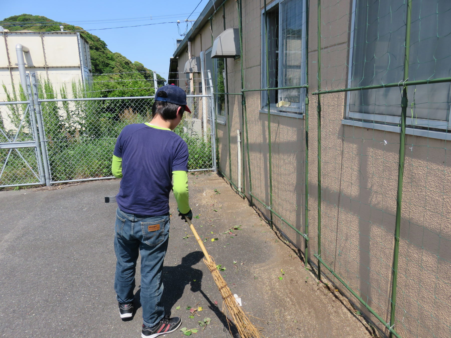 今回は緑のカーテンを予定している場所の雑草取りや周辺の清掃活動を主な活動といたしました。雑草を取りながら小さな昆虫を見つけて大喜びする利用者、黙々と雑草取りをする他利用者や指導員に「この草は取っていいの?」と確認しながら作業に取り組む利用者と皆さんそれぞれ積極的に参加することができました。