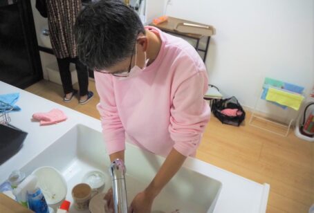 利用者の方が地域において共同して自立した生活がおくれるように、支援者や世話人や必要に応じてヘルパー等を利用しながら、それぞれの状況や置かれている環境に応じて、日常の困っている事や悩みを一緒に考えて行く相談支援や、通院同行・服薬管理等の健康支援やその他の生活上の援助や入浴、排泄、食事等の介護を適切かつ効果的に行います。コロナ対策にも力を入れ、消毒の徹底やこまめな体温測定など行い、また火災、風水害、地震等に対する避難訓練を通して災害に対する対応も行っています。
