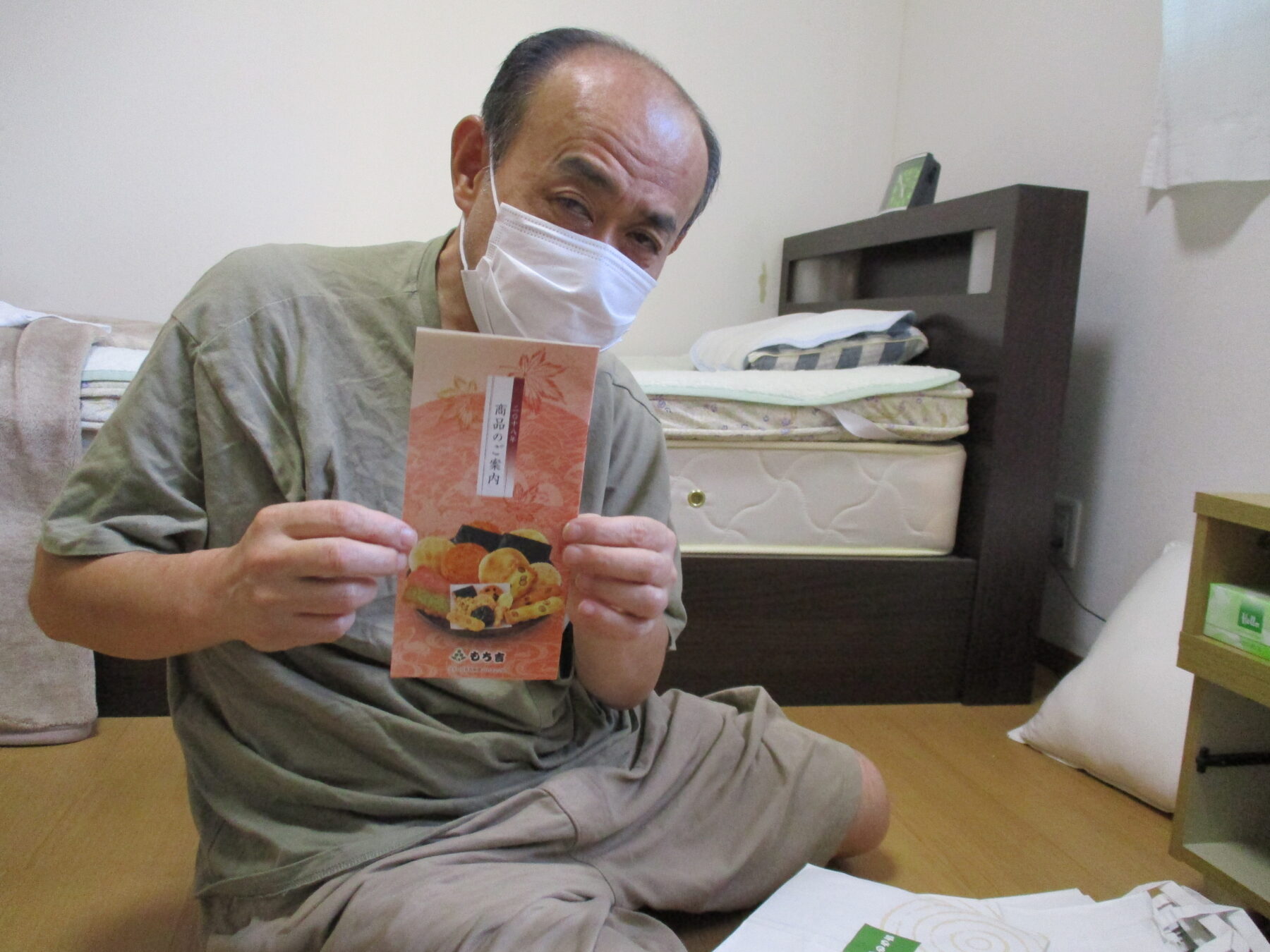 グループホーム支援センター中部を利用するAさんは、お店の紙袋やおやつを買ったときに入れてくれるチラシを集めるのが趣味です。