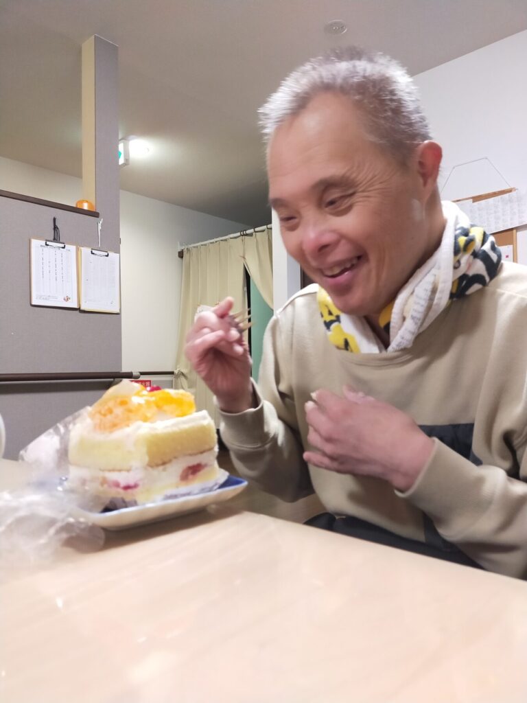 11月〇日、赤崎ホームでは I さんの61回目のお誕生日をお祝いしました。