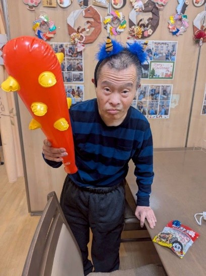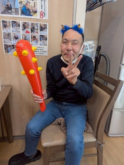 暦の上では春が始まるとはいえ、まだまだ寒い日が続いています。宮前ホームでは2月3日、節分の日に恵方巻や節分豆を召し上がり、皆さんで節分の雰囲気を味わいました。普段の夕食よりちょっぴり豪華なラインナップに皆さん大喜び✨鬼のカチューシャや金棒を手に取り、少し照れながらも鬼に変身した姿で記念撮影を行いました。「鬼は外!福は内!」の掛け声とともにホーム内の厄をしっかりと払い、沢山の「福」を呼び込めた一日となりました。
