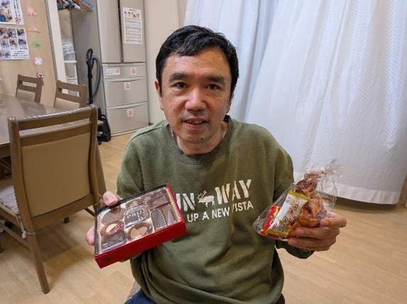 また、この日ちょうど日帰りで帰省していたTさんは、ご家族から素敵なバレンタインチョコをプレゼントされたそうでホームへ戻ってからも「見て!」ととてもご機嫌な様子でした!来月のホワイトデーもお楽しみに♪