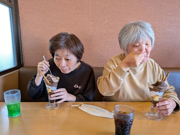 2月14日はバレンタインデー。寒い冬の日には珍しい、春のようなポカポカ日和に恵まれました。絶好のお出かけ日和ということで、利用者の皆さんと一緒にジョイフルへパフェを食べに行ってきました!とろけるような甘いチョコレートパフェを食べられ、日ごろの疲れも吹き飛ぶようなゆったりと癒されたひとときとなりました。