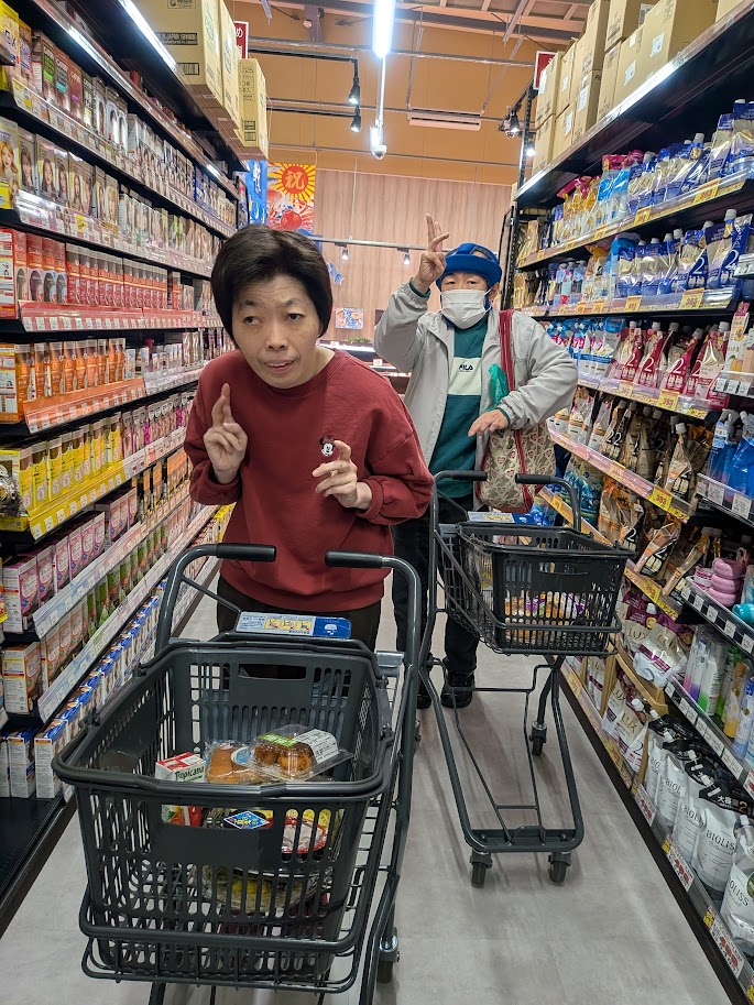宮前ホームでは、先日新しくオープンしたダイレックスへ買い物に出かけました。普段利用しているコンビニやスーパーとは一味違う、広い店内や品揃えに皆さん興味津々で、同じ商品しか選ばない方も今日は違うものを手に取ってみたりと新しい挑戦をしている様子を見れた事がとても印象的でした。