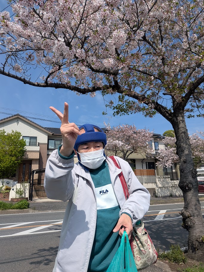 満開の桜の下に到着すると皆さんパッと明るい表情をされ「綺麗!」「さくらだ!」と会話も弾みました。日常の何気ない外出ですが、とても良い気分転換になったようでした。これからも季節の移ろいを感じられるような時間を大切にしていきたいと思います。