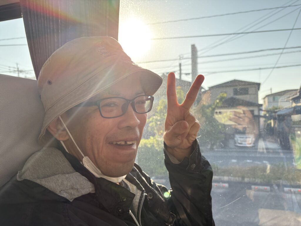 晴天にも恵まれたこの日、楠橋ホームのIさんとEさんは楠橋地区の町内バスハイクに参加してきました。