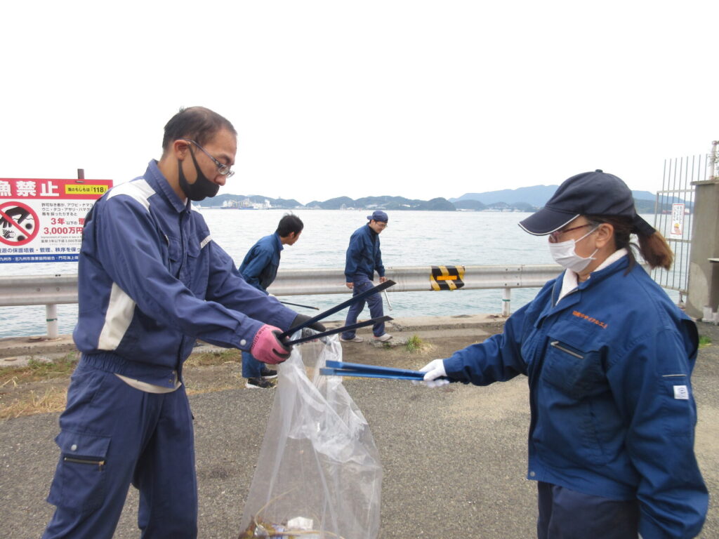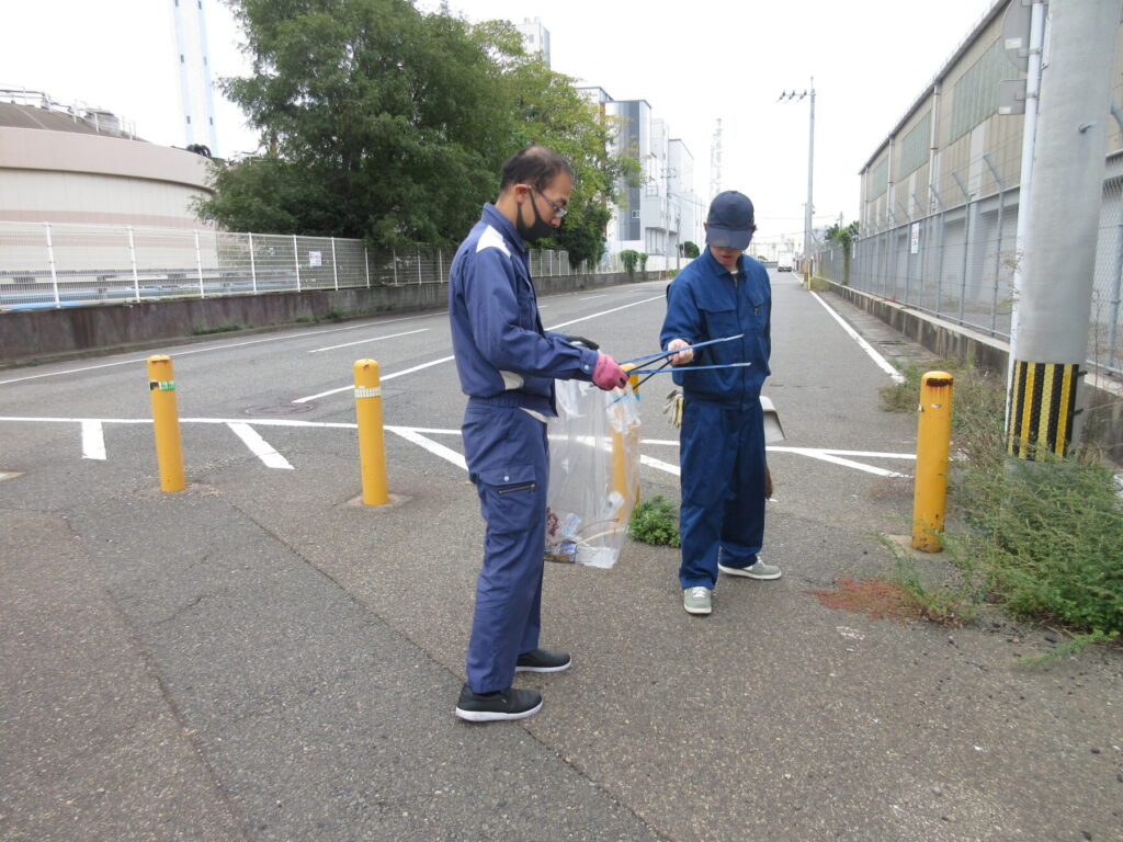 涼しくなり、ようやく地域清掃を再開!久しぶりの地域清掃ということで、参加した従業員はやる気満々。タバコの吸い殻等の小さいゴミも手際よく拾い集めていきます。