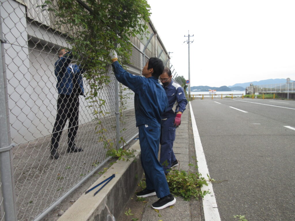 工房のフェンスに巻き付いたツルも取り除き、道路周辺がすっきりときれいになりました。