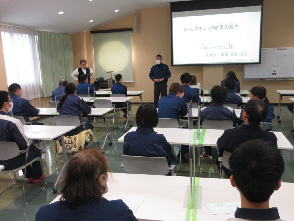 11月に行ったストレスチェックの結果が返却され、産業医より結果表の見方についての説明を受けました。ストレスの高い状態が続くと、心や身体に悪い影響が出てしまい、元気に働くことが難しくなってしまうこともあります。