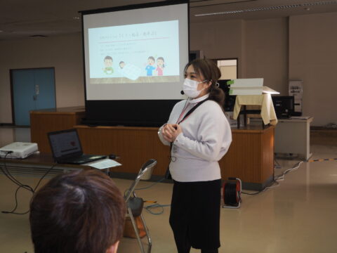 2月21日、八幡厚生病院より講師をお招きし、メンタルヘルス研修を行いました。仕事を行っていく中で、ストレスをためないこと、そのためにも『くう・ねる・あそぶ』をバランスよく保つことが大事であることを教わりました。気持ちが不安定で落ち着かない、イライラする、しくしくなる、これらがこころの中で溜まってしまうと、あふれてしまい、大声を出す、ものにあたるなどの行動に出てしまいます。こうならないためにも、自分の気持ちを誰かに聞いてもらうこと、深呼吸をすること、簡単なストレッチをすることで、こころが落ち着いていくことを教わりました。