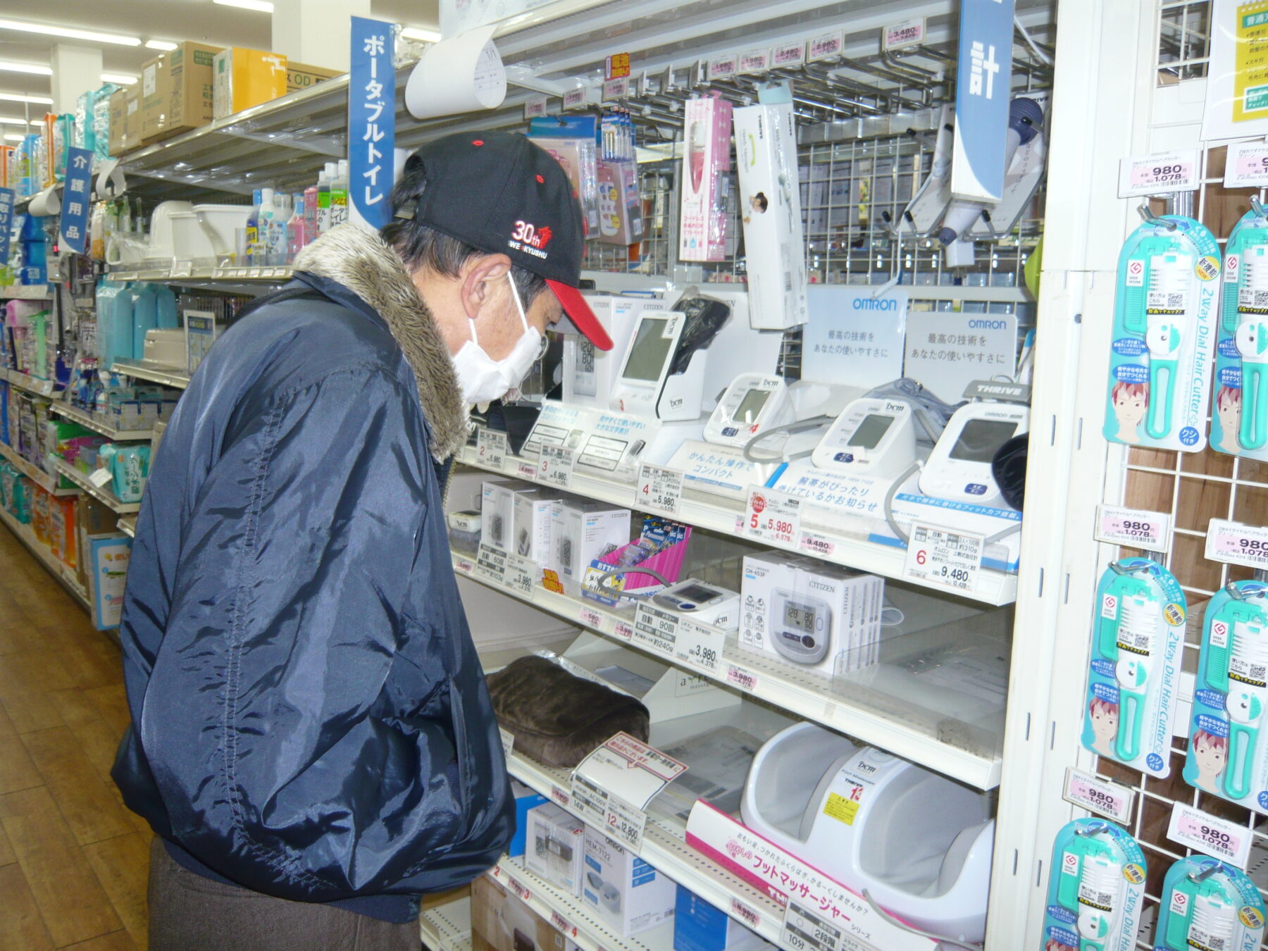 買いに来ました。これまでは手首で計測するタイプだったそうですが、今回は上腕で計測するタイプにして使いやすい