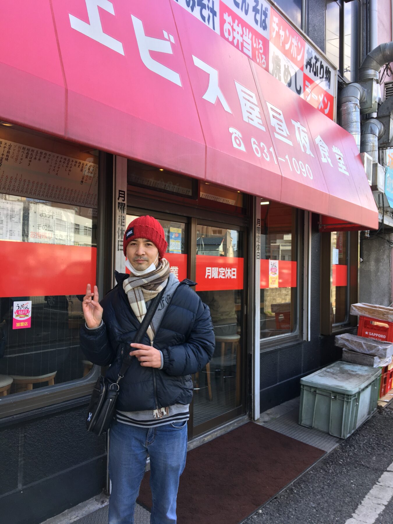 普段はパン作りをお仕事にされているHさん、休日はボウリングや食べ歩き等を楽しんでいます。今日はネットで探したという、その名も“エビス屋昼夜食堂”へ突撃しました。黒崎にあるこの食堂は、約60年前から北九州市の高度成長期を支えたその名の通り24時間営業の食堂です。Hさんはトンカツと豚汁、ごはん(大)を注文しましたが、写真の通りボリューム満点です。Hさんも想像以上だったようで、何とか食べ終えていました。ちなみにこの食堂カウンター席しかなく、半分以上のお客さんがビールや焼酎を飲まれていました。さすが、鉄の街を支え続けてきた食堂ですね。お客さんも熱いです。