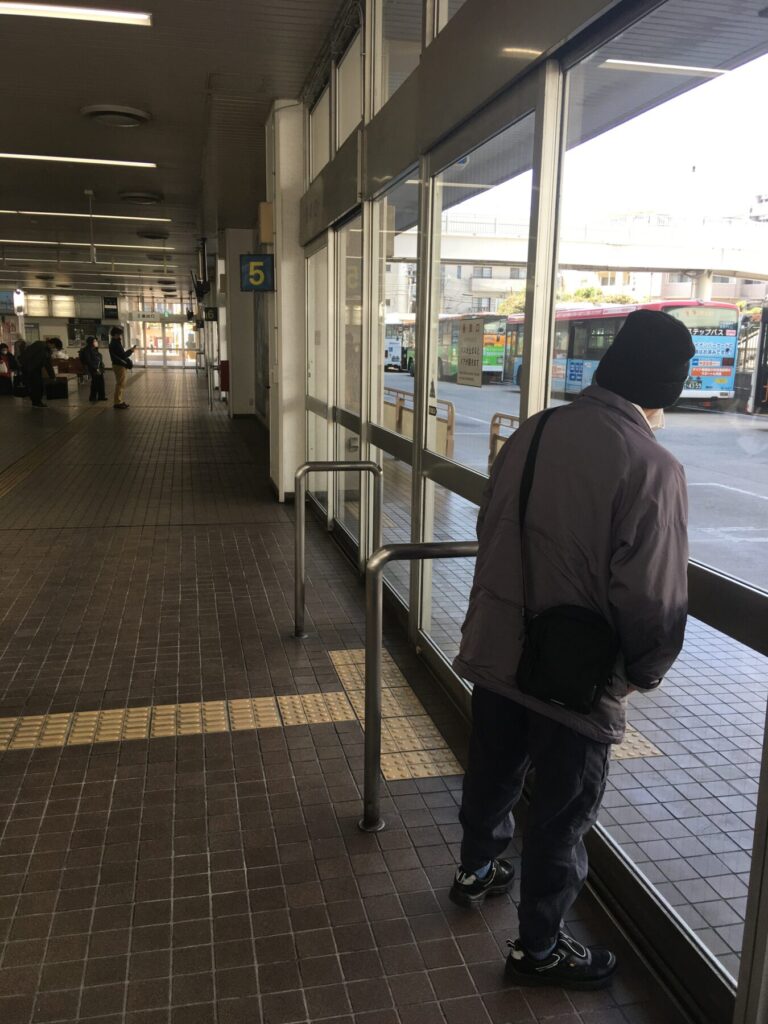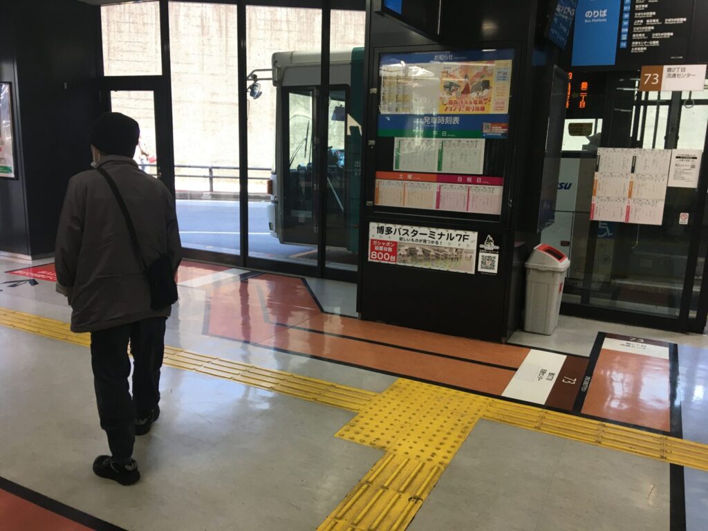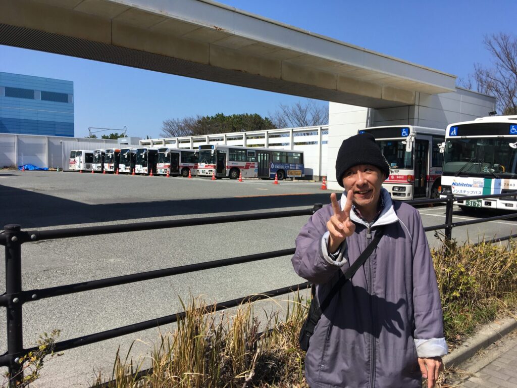 グループホームを利用しているKさん、快晴の休日に外出しました。「福岡タワーに行きたい」ということで張り切って出発。ただKさんのお目当ては福岡タワーの敷地内にあるバスターミナルで、タワーには目もくれず熱心にバスの発着を見守っていました。その後福岡市早良区の藤崎バスターミナル、博多駅バスターミナルを巡って帰路につきました。 観光の見どころが違います。さすが“ミスターバスターミナル”ですね。