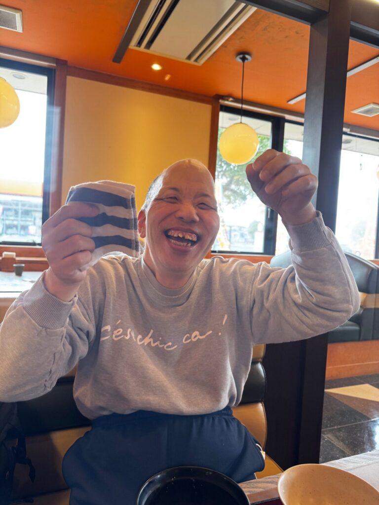 いつも余暇外出をとても楽しみにしているKさん。この日は外出が急に決まったのですが、準備も早くスムーズに出発されました。