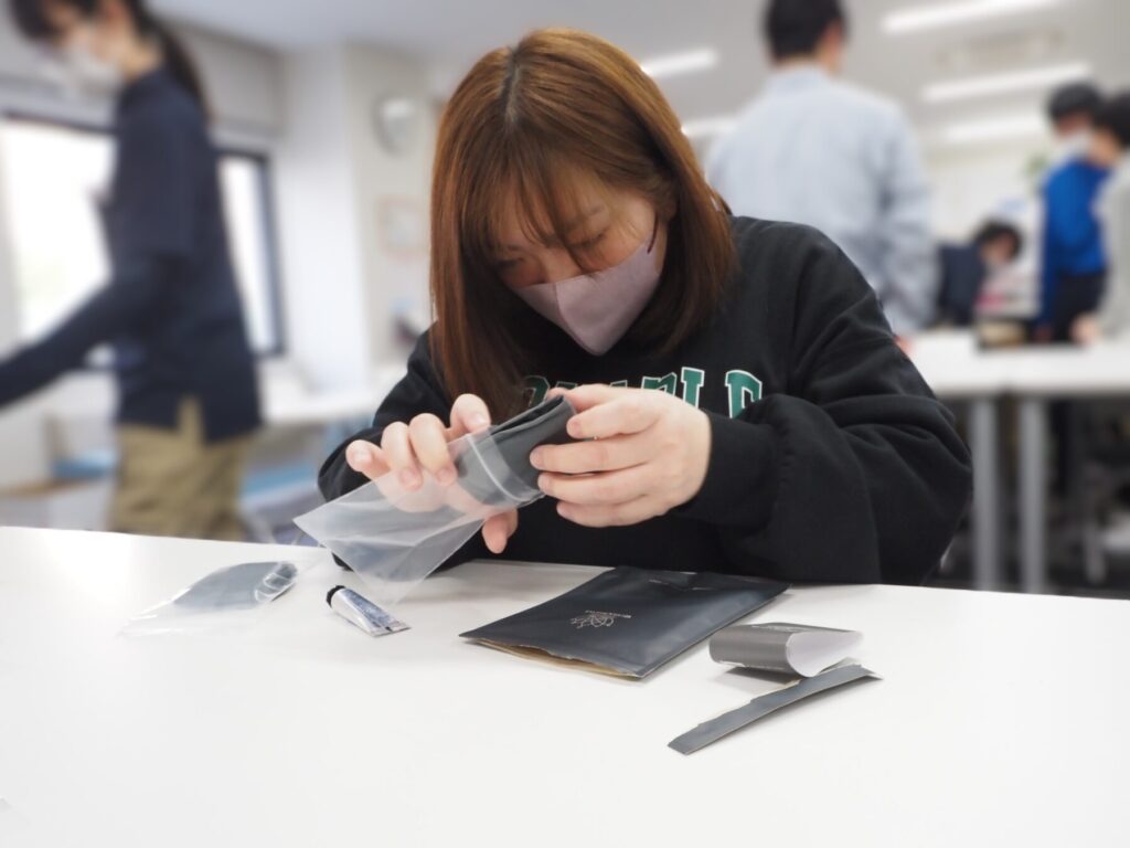始終緊張した様子で参加していたCさん。業務説明や見学、企業役員との面談の場面では自信なさげに振舞いながらも、軽作業体験(アメニティグッズの準備)では持ち前の集中力を発揮し、着々と作業をこなしていました。