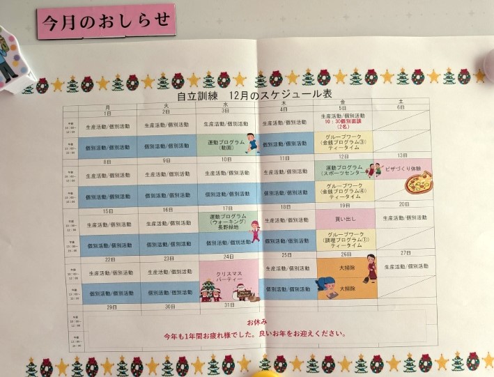 その他、推し活以外に11月の自立訓練(生活訓練)は様々な活動を行いました。