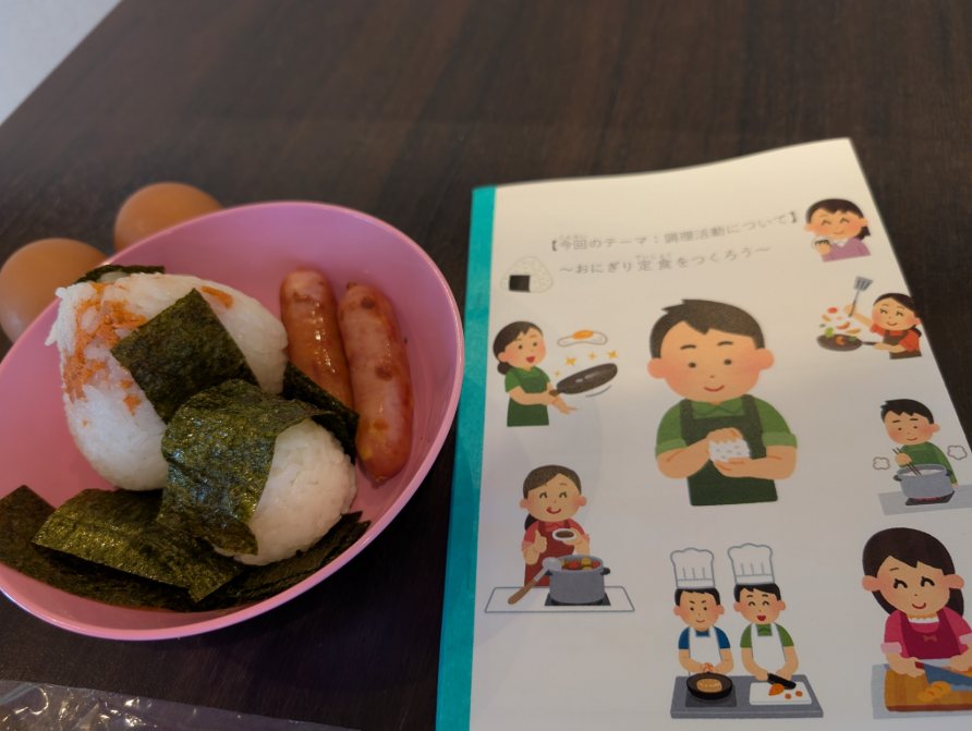バレンタインにはチョコレートタルト、別の日にはおにぎり定食(おにぎり、ゆで卵、ウインナー)を調理しました。今回の調理活動では準備段階でAI(人工知能)を活用。「何が必要?予算はいくら?」という疑問をAIに相談し、それをもとに買い出しへ。実際には予想よりも安く購入することに成功しました!!自分たちの目でしっかり商品を選ぶ事で、節約を意識した買い物の方法を学ぶ良い機会と繋がりました。