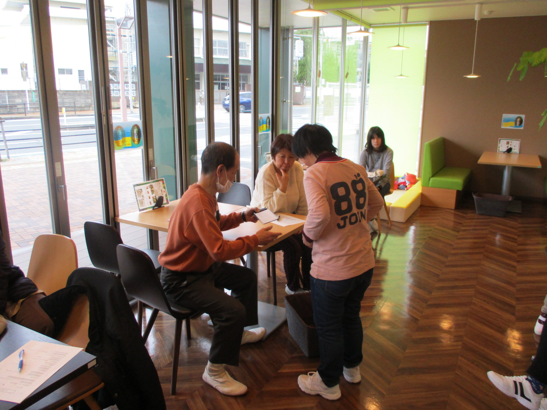 ただ支援員から一方的に伝えるのではなく、自分たちで話し合いながら進めていくのがポイント。自身の課題から日ごろ気になっていたこと、こうすればもっと働きやすくなるのではないかという提案までいろいろな意見が挙がり、とても有意義な勉強会となりました。気持ち新たにカフェぽぽっと一同おもてなしをいたしますのでご来店お待ちしております!(奥村)