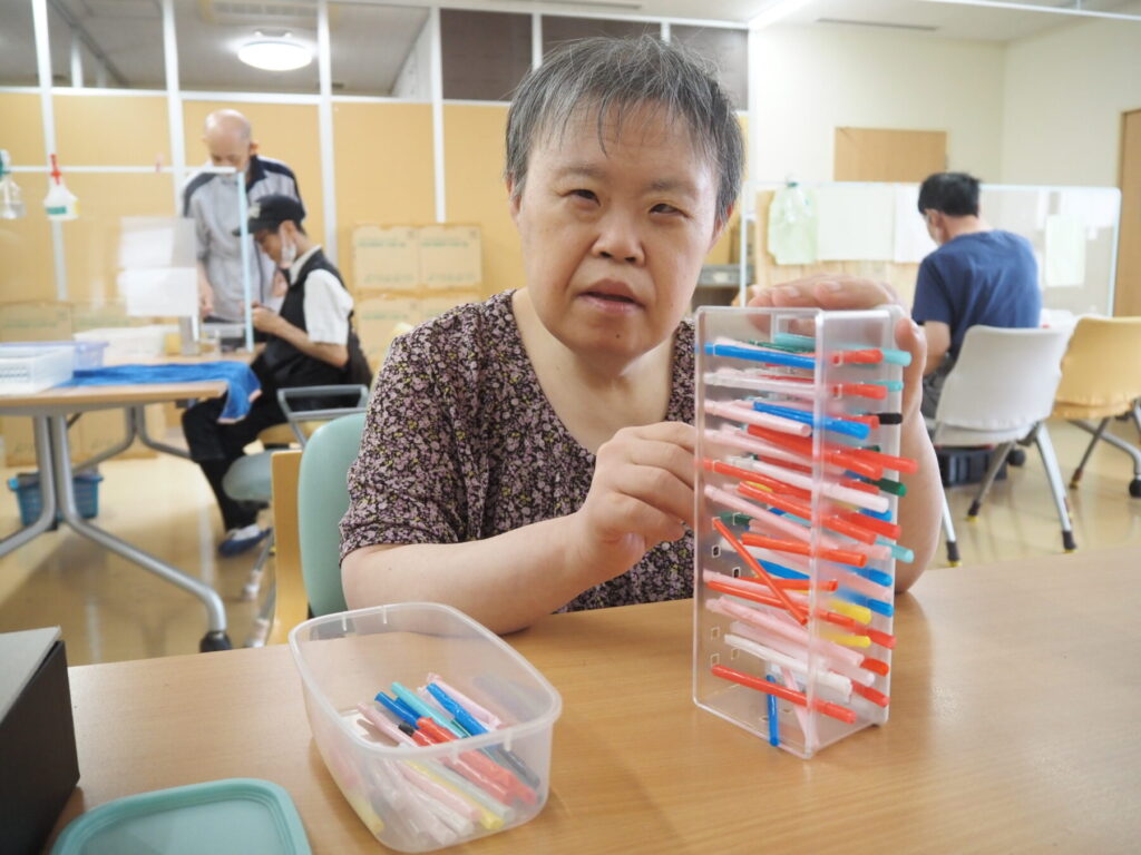 普段はストローさしなどのワーク活動を中心に、ダンスやリフレッシュウォーキングにも参加されています。ストローさしは、インクルきくの物もありますが、ご自身のオリジナルストローさしを毎日持ってこられ、集中して取り組まれています。 これからもYさんのペースで楽しく活動に取り組んでいきましょう!