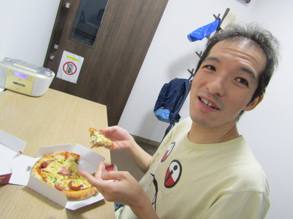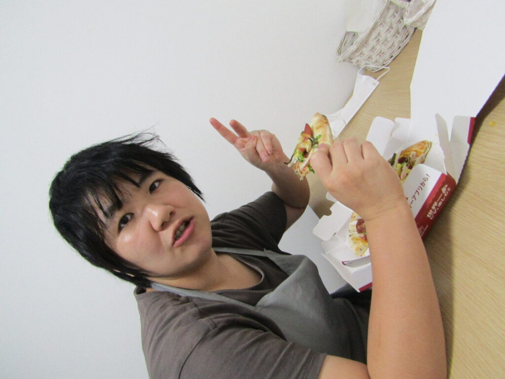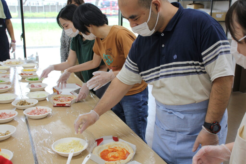 ピザ作りでは支援員やビッグベアーズ出張スタッフの方々からのサポートもありつつ、皆さんが思い思いに好きな具材をお好みの量で生地に載せていきました。そうして焼きあがったピザを皆さんそれぞれ美味しそうに、満足そうに召し上がっていて、とても充実した行事となりました。