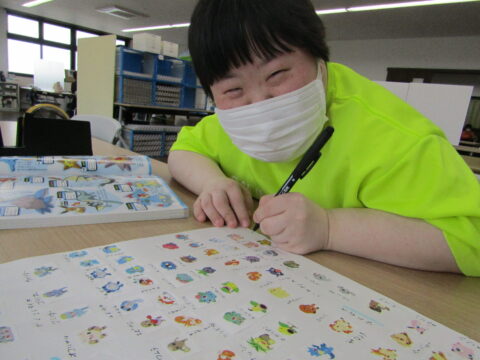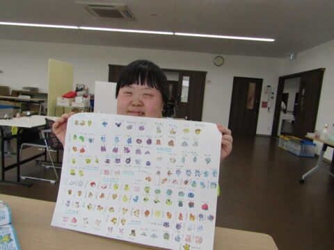 今回ご紹介するのは、利用者さんが好きな「キャラクターの図鑑を作ろう!!」というものです。色々な種類のキャラクターをグループごとに分けて大きな紙に貼り付け、オリジナルの図鑑を作るというものでした。