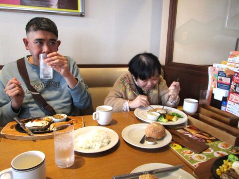 入館前には、まずは腹ごしらえです。近くのファミリーレストランにて、ハンバーグやチキンステーキを堪能し、エネルギーをチャージしました。