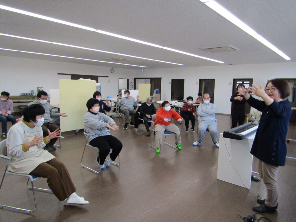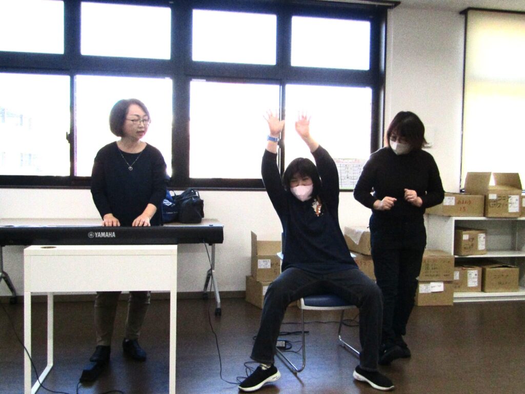 今回も音楽に合わせて体を動かしたり、クイズなどを楽しみました。全体の場に出てお手本となったり、クイズを出す係になったりと、活動の中で役割を持つことで、より主体的に活動に参加することができていました。