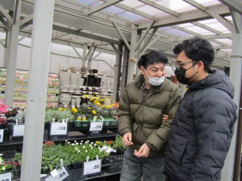 この日は専門学校から実習生の方も来てくださり、一緒に花選びを楽しみました。