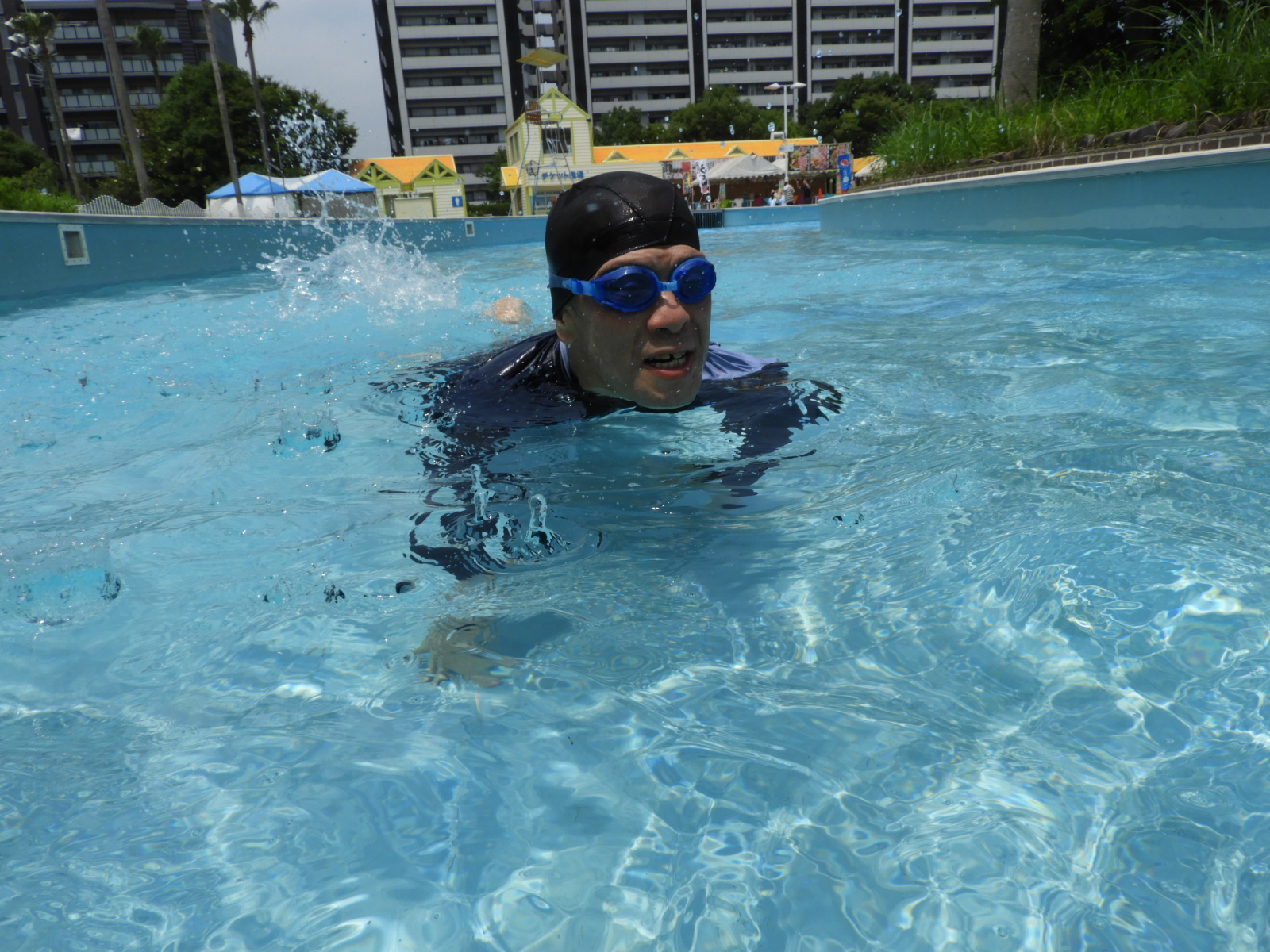 久しぶりのプールのため、初めは戸惑う場面もありましたが、泳いでいるうちに楽しさを思い出したようで、浮き輪を使ったり潜ったりと、自分なりに楽しんでいました。