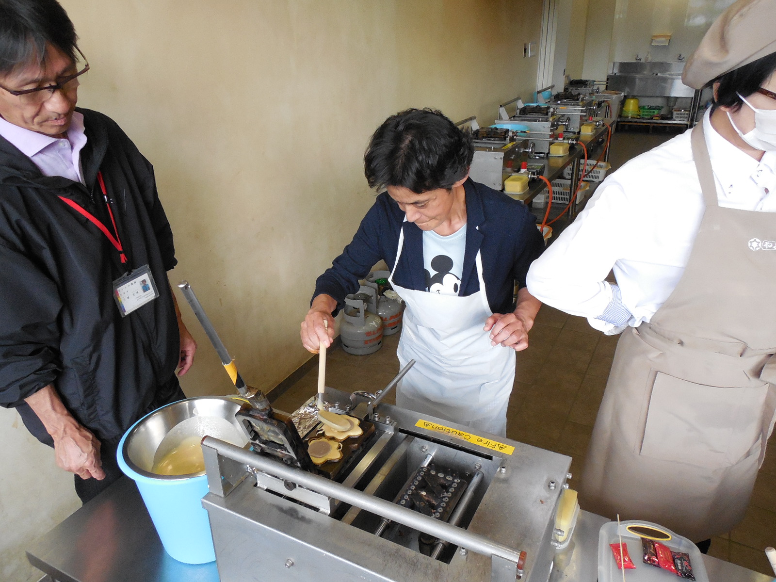 もみじ饅頭作り体験では、お店の人の説明をしっかり聞いて綺麗なもみじ饅頭を作ることができました。Mさんは「出来立てのもみじ饅頭はおいしいね」と笑顔で話していました。