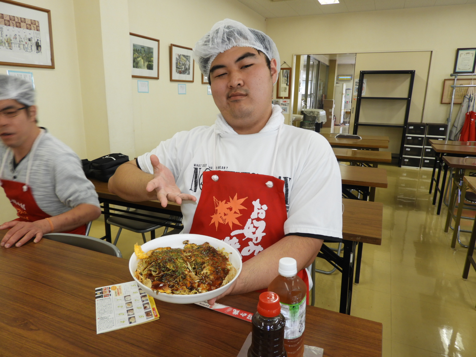 2日目は、広島風お好み焼きの作り体験をしました。広島風とは、具材を全部混ぜ込まずに、重ね焼きをするという特徴があります。ひっくり返す作業が難しかったようですが、出来たお好み焼きをみてNさんは「これはB級グルメ並みの芸術作品だ!!」と大絶賛でした。他の利用者さんもなかなかできない体験ができて楽しかったようです。