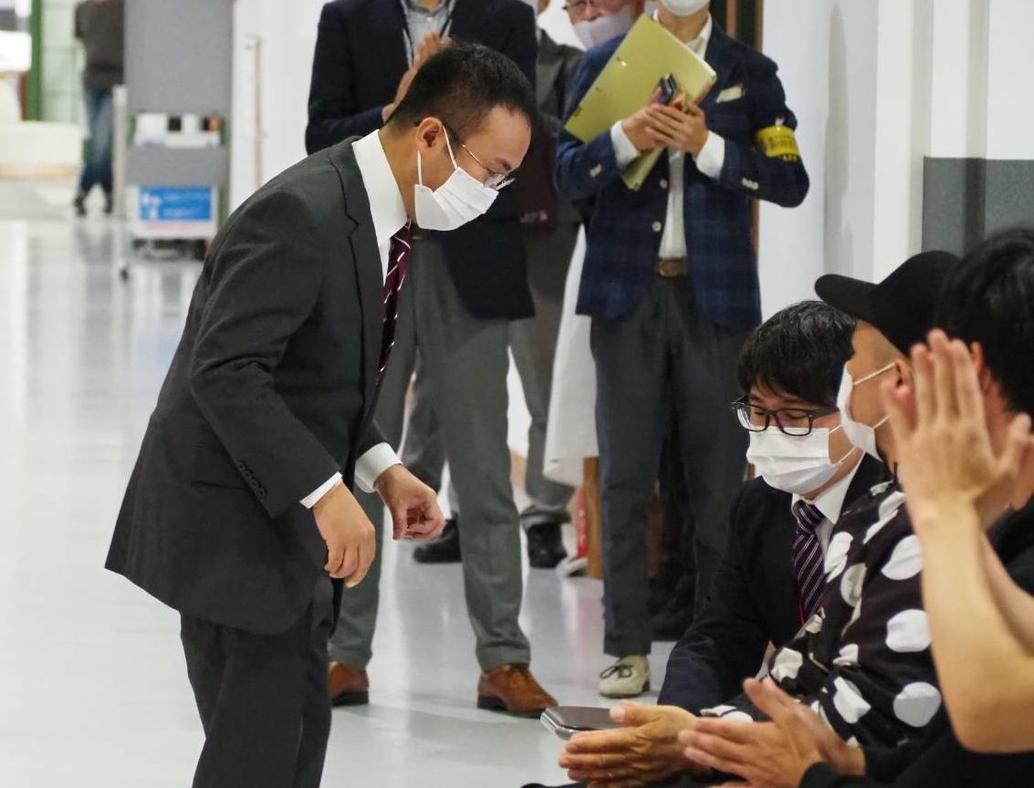 9日、オープニングセレモニーに参加した友近さん。アーティストとして名前を紹介され、緊張した面持ちで皆さんに向かって会釈をしました。また、一つ新しい経験を重ねた日になりました。