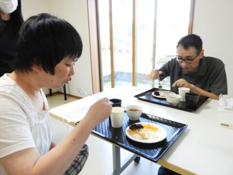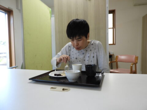 この日の為に一緒にお買い物をしたWさんとTさん。Wさんは「きな粉、これがいいんやない?」「アイスも食べたい」「飲み物はコーヒーやね」とニコニコでお買い物を楽しんでいました。Tさんも数種類ある商品から選んだあんこを見せてくれたりと、積極的にお買い物をしながら楽しんでいる様子がありました。