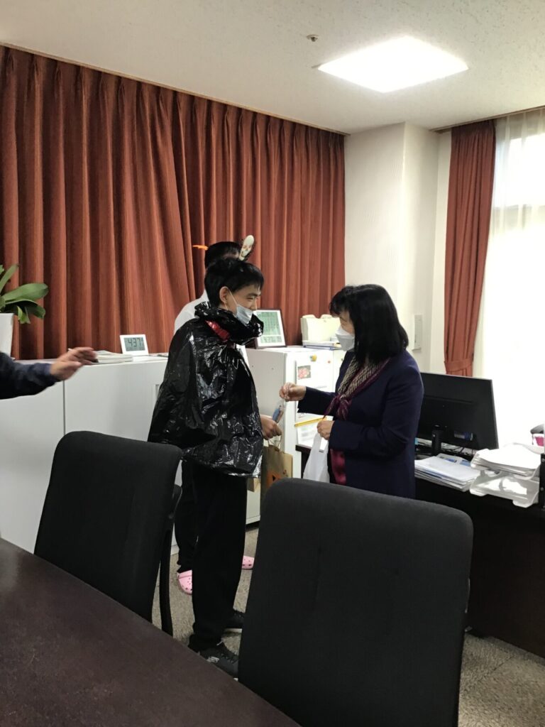 育成会会館の本部や他事業所にお菓子を貰いに行きました。