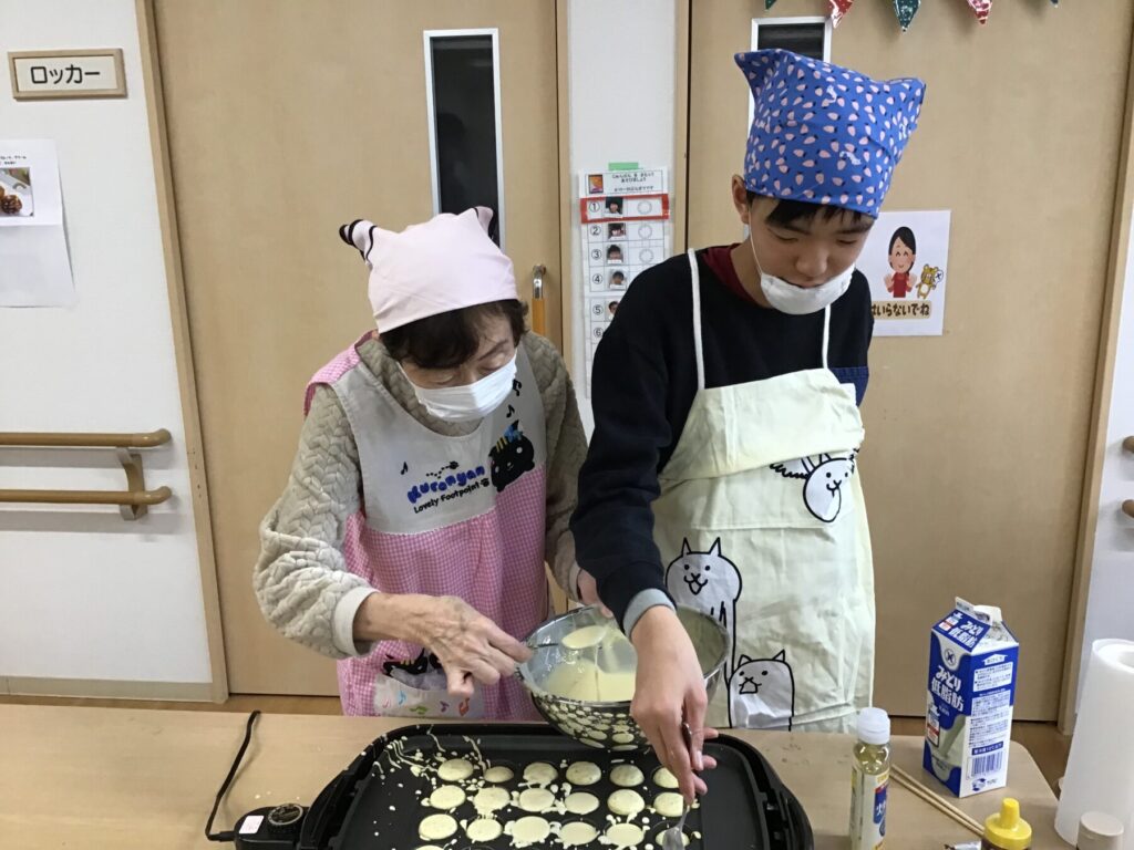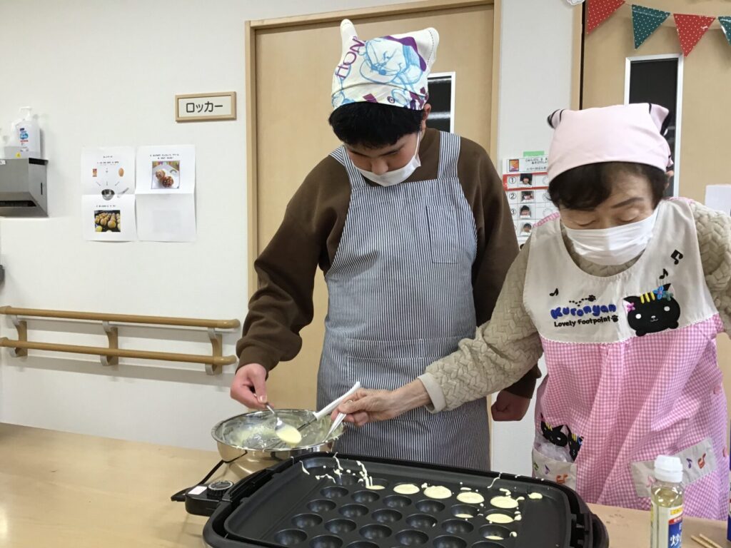 先日ほっとハウスとばたでは、ベビーカステラ作りを行いました。材料をボウルに入れて力いっぱい混ぜて、タコ焼き機に生地を流し込みます。Iさんはひっくり返す際に焼き具合を気にしながらちょうど良い具合で焼き上げることができました。