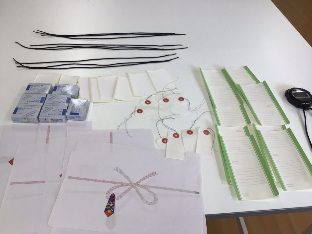確認をして品物が数通り揃っていれば、大きい机に見えやすいように品物を並べて、自分が大丈夫だと思ったところでタイマーを止めて職員の方に確認をして貰います。