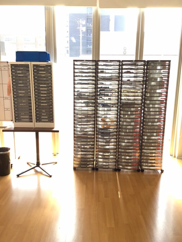 特にピッキングの訓練を行うための棚はひときわ目立つ存在になっています!
