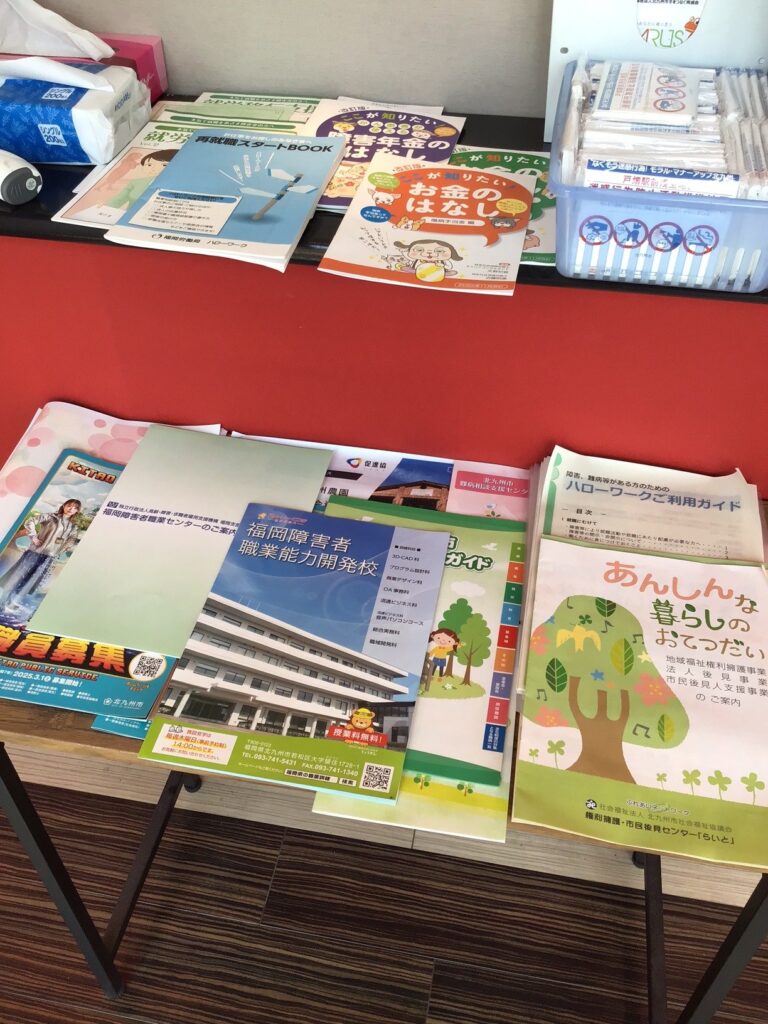 玄関先にはさまざまな関係機関の情報提供コーナーを設けています!