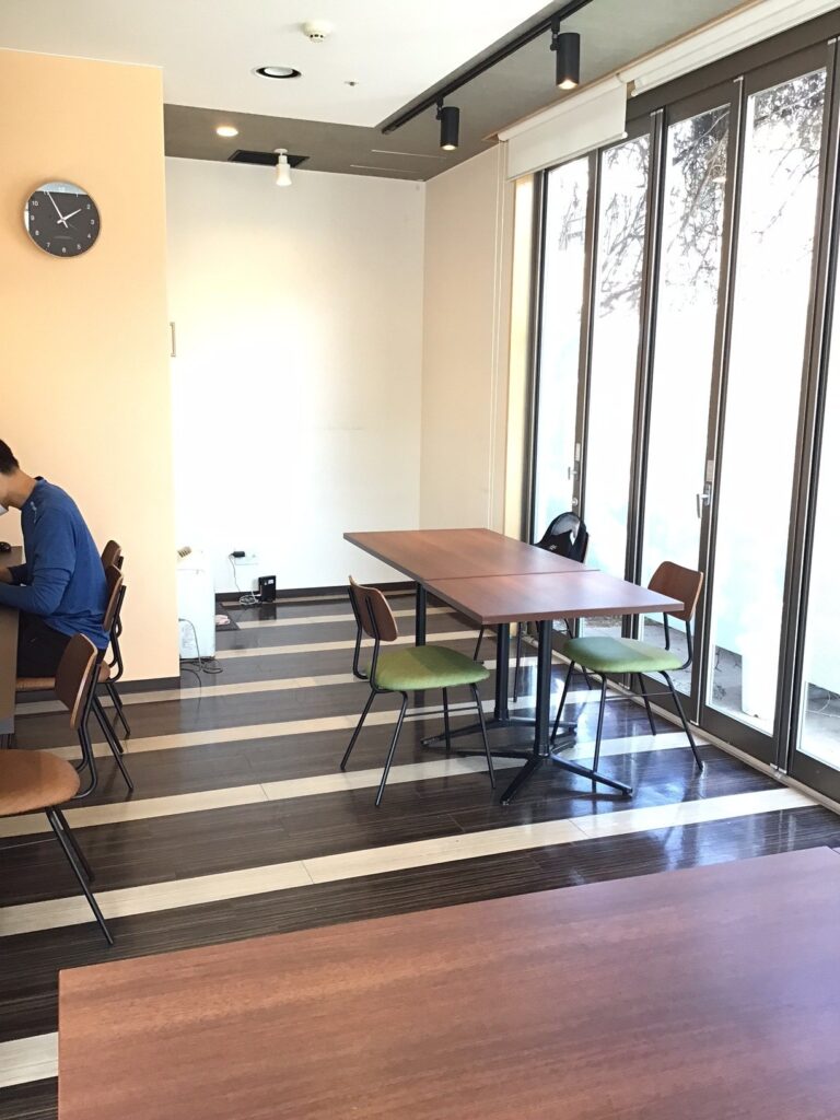 一か所はカフェのような落ち着いた雰囲気で外の日差しもよく入る空間になっており、PCなど集中して作業を行いたいときにはうってつけの場所です♪