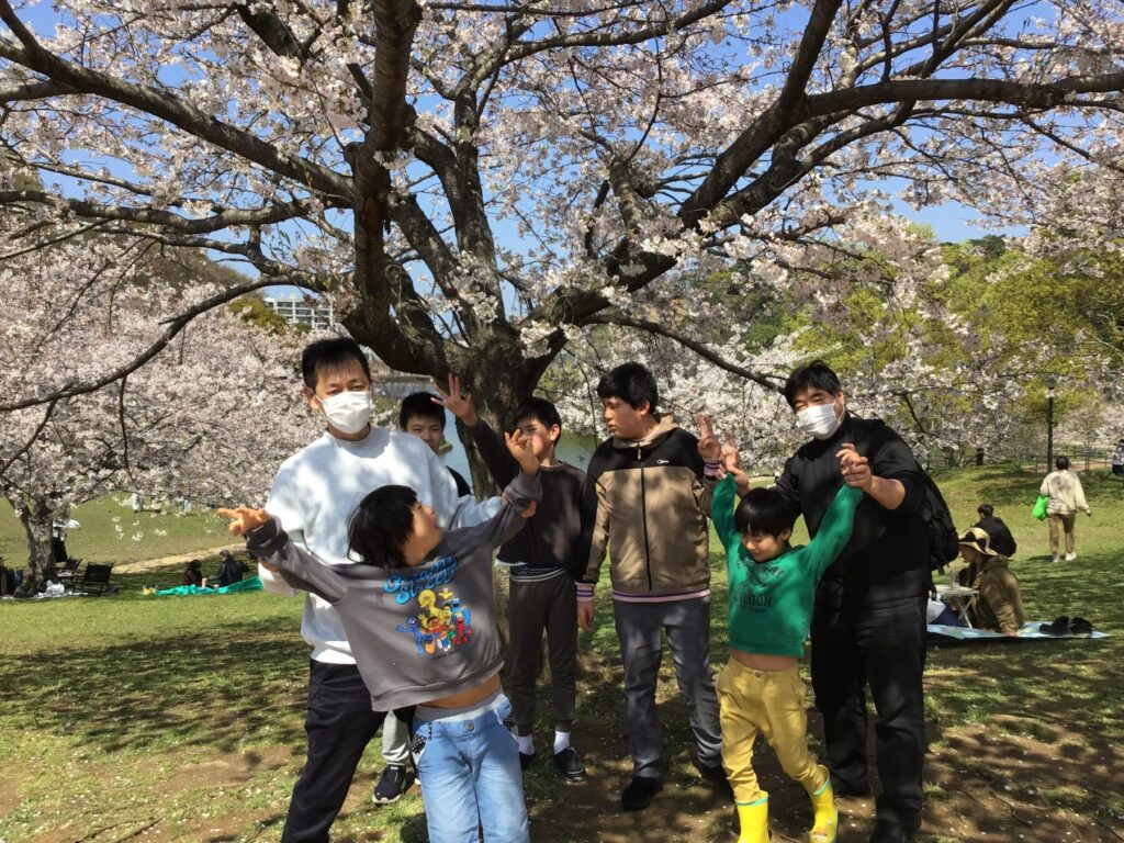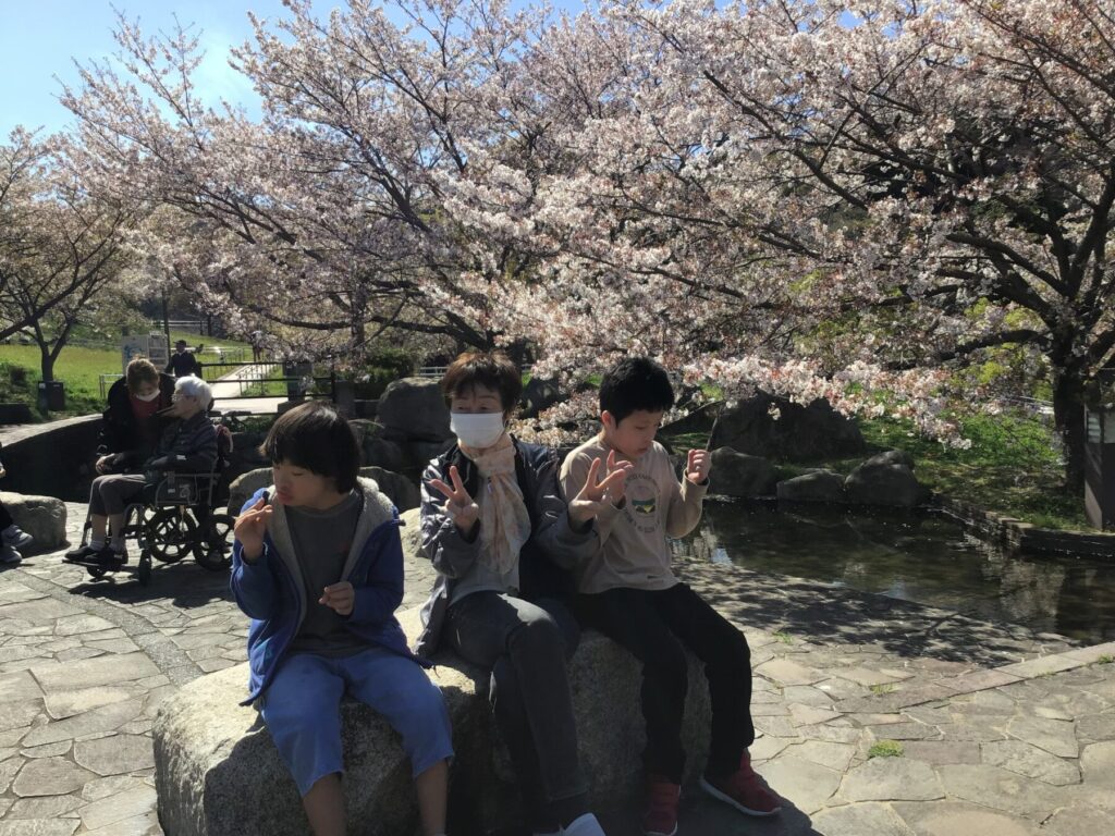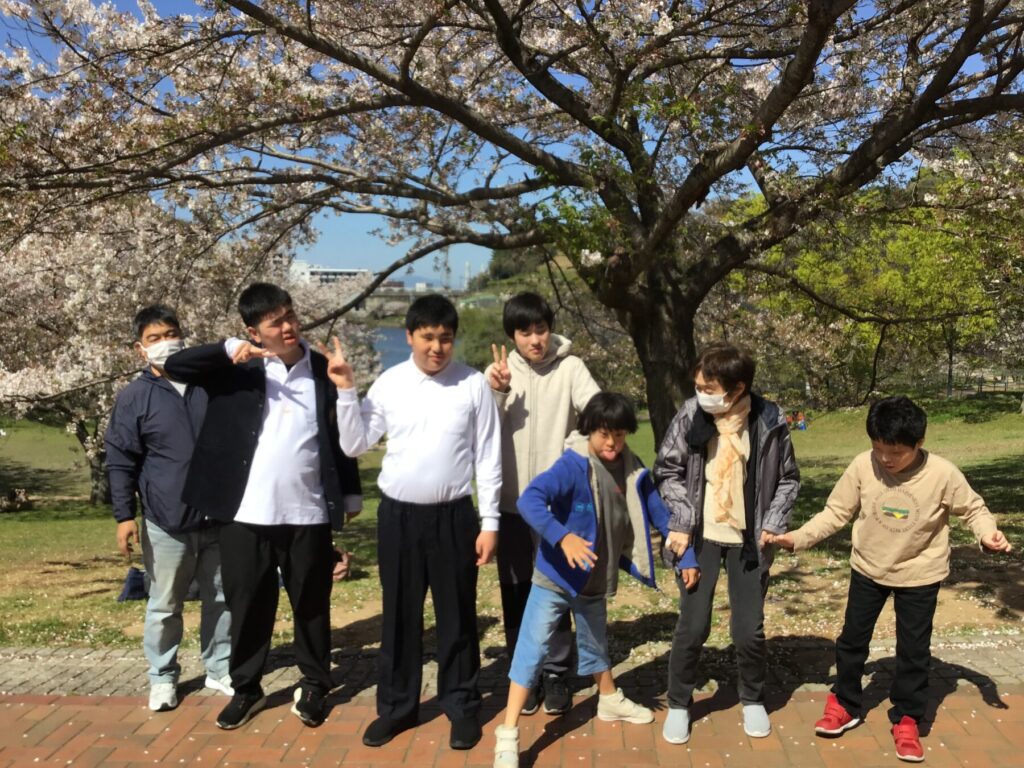 4月になり、令和8年度がスタートしました。外を見ると桜がとてもきれいに咲いており、みんなで桜を眺めながら散歩を楽しみ、春の訪れを感じながら歩く時間は、とても心地よいひとときでした。