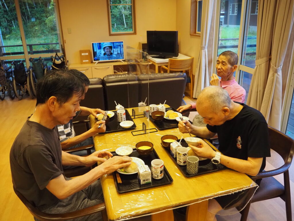 地域の中で生活する、グループホームでの暮らし。自分で出来る事は継続して取り組み、一人では難しい事や苦手な事は、職員や世話人の支援を受けています。日中事業所に作業に出掛ける日の朝は、着替え、食後の歯磨き、男性は髭剃り、女性は髪を整えたりと、慌ただしく時間が過ぎて行きます。利用者さんそれぞれ、自分の得意な事が生かせたり体力に合った通所先に通っています。今日も一日、元気に頑張りましょう。