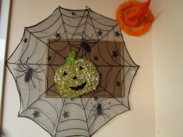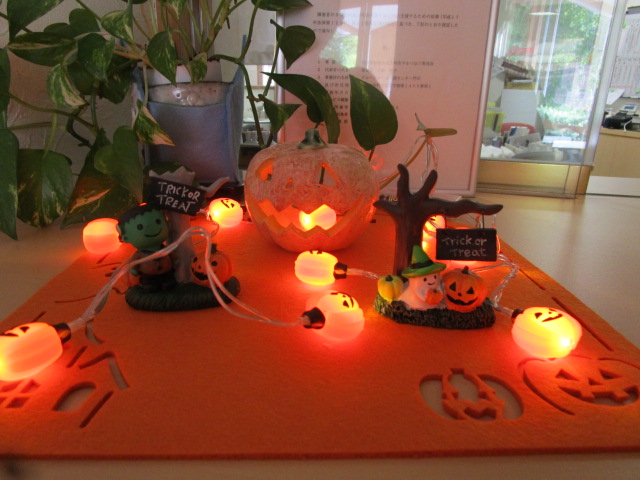 ハロウィン祭を予定していますが館内の飾り付けを終えるといち早く見に来ていたFさん、